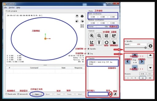 3. Ręcznie wyreguluj położenie osi X, Y i Z jako punkt początkowy grawerowania, ręcznie włącz lub wyłącz wrzeciono.