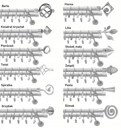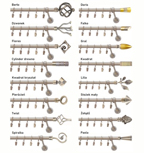 DOSTĘPNE KOLORY I ZAKOŃCZENIA KARNISZY: