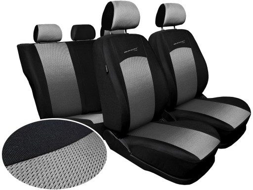 Pokrowce SPORT LINE wykonane zostały z wysokiej jakości dzianiny poliestrowej o specjalnej oczkowej strukturze (tzw. AIRMESH), oraz tapicerskiej dzianiny poliestrowej w bocznych częściach pokrowca.