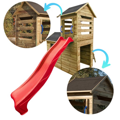 - Dzięki możliwości wyposażenia domku w ślizg możesz stworzyć dla swego dziecka cały plac zabaw, którego domek będzie centralną częścią