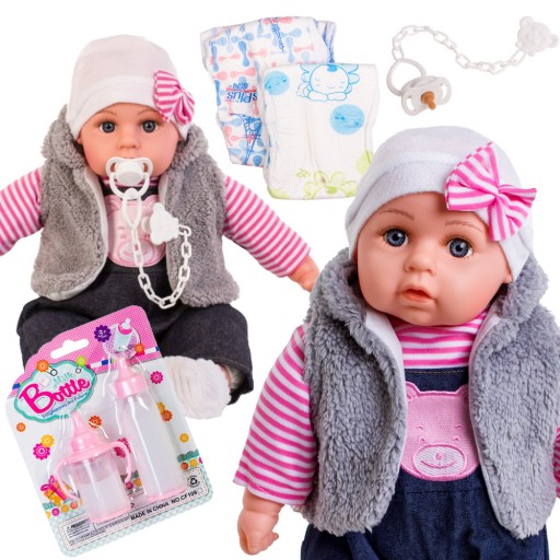 LALKA BOBAS MÓWI PL + smoczek + butelki + pampersy