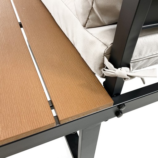 ✔️ Blat stołu, boki narożnika oraz ławka z tworzywa imitującego drewno - polywood.