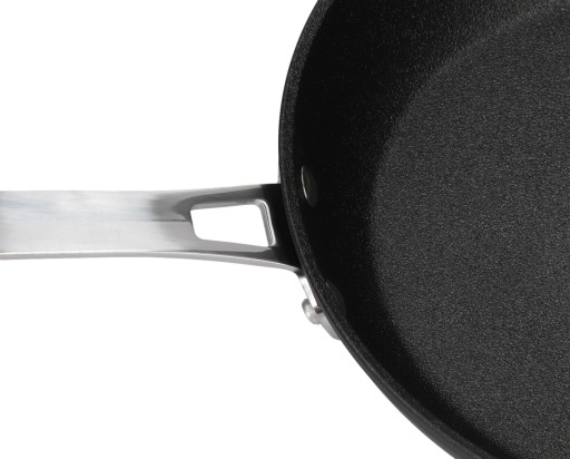 - rączka wykonana ze stali nierdzewnej, łączona za pomocą nitów, podczas użytkowania ciepła, ale nie gorąca