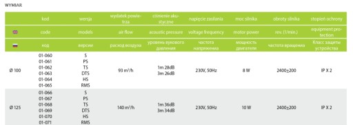 - Wydatek powietrza: 93 m3/h