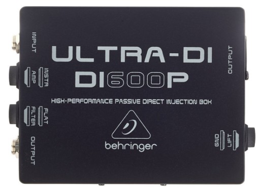 Pasywny DI Box Behringer Ultra-DI DI600P to profesjonalne, wielofunkcyjne urządzenie do studia oraz działań na żywo. Di-box stosowane są w celu podłączenia urządzeń które pracują bez uziemienia przeważnie: keyboard, laptop, gitara elektryczna, akustyczna. Bardzo wytrzymała metalowa obudowa DI Box-a.