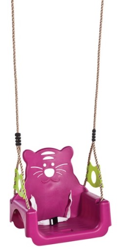 Huśtawka posiada barierkę oraz pasy, które mają na celu zabezpieczenie dziecka przed niekontrolowanym upadkiem.