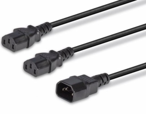 - Za pomocą tego rozdzielacza możesz zasilić dwa urządzenia z gniazdem IEC z jednego źródła IEC - np. dwa monitory/drukarki/odtwarzacze etc.