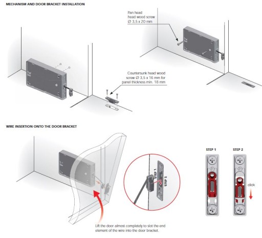 Najlepiej stosować z zawiasami Kimana lub zwykłymi nakładanymi bez sprężyny.