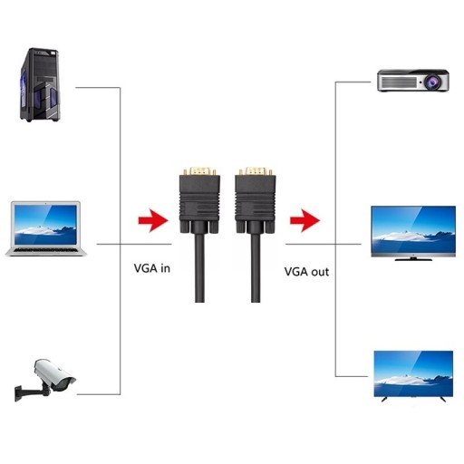 Kabel VGA do VGA to idealne rozwiązanie do przesyłania obrazu z komputerów i laptopów do telewizorów, monitorów czy projektorów. Przewód obsługuje maksymalną rozdzielczość FULL HD 1920x1080p i gwarantuje stabilne przesyłanie sygnału video.