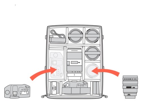 ICU (INTERNAL CAMERA UNITS) zapewnia ochronę aparatu i wartościowych przedmiotów oraz ułatwia organizację wewnątrz plecaka. Wykonane z wytrzymałej piankowej wyściółki i rzepów Velcro® gwarantują bezpieczeństwo sprzętu.