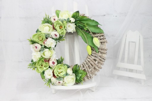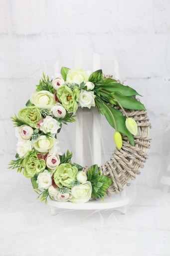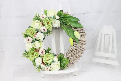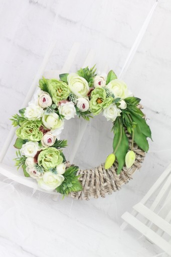 Wianek wiosenny dekoracja na drzwi stroik ZIELEŃ