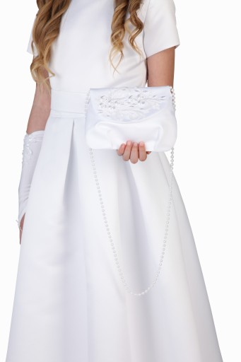 Elegancka torebka komunijna w kolorze bieli. Uszyta ręcznie w naszej pracowni, specjalnie na uroczystość I Komunii Św.