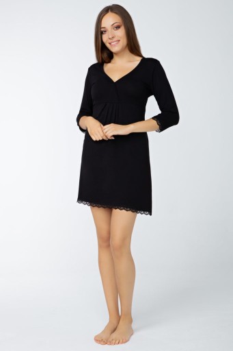 Koszulka w jednolitym kolorze – czarnym, odcinana pod biustem, posiada 3/4 rękaw oraz kopertowy dekolt. Wykończenie koszulki delikatną koronką.