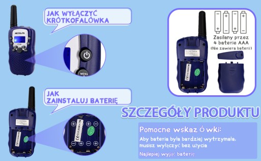 - 2 x Retevis RT388 Walkie Talkie dla dzieci