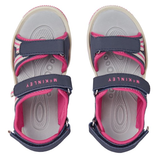 Regulowane paski umożliwiają łatwe dopasowanie do stopy dziecka, a miękka wyściółka z dodatkiem bawełny chroni stopy przed otarciami i odparzeniami. Wygodne sandały do wody McKinley Reece posiadają elastyczną podeszwę, która pracuje razem ze stopą i dobrze amortyzuje na twardym podłożu. Odporna na ścieranie podeszwa z terenowym bieżnikiem to wytrzymałość i dobrą przyczepność.