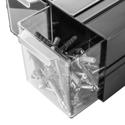 Szufladki są wykonane z wysokiej jakości przezroczystego polistyrenu.