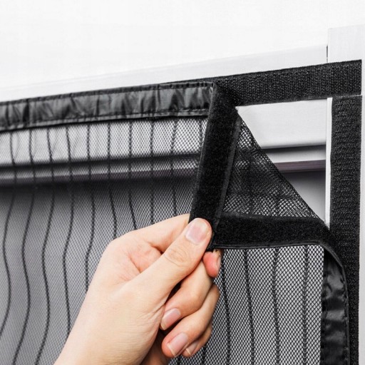 Do zasłony dołączona jest długa lepka magiczna taśma. Zasłonę można było przymocować do drzwi bez użycia narzędzi. Dołączone są szpilki, które mogą pomóc skuteczniej przykleić siatkę do drewnianych drzwi.
