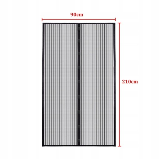 Rozmiar ekranu to 90 x 210 cm. Przed zakupem należy odpowiednio zmierzyć rozmiar drzwi. Zawieś go prosto i nie ciągnij zbyt mocno, zanim się przyklei, aby magnesy mogły się zaczepić, gdy zasłona się zamknie.