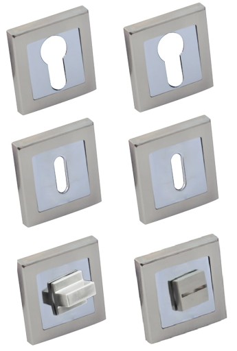 Klamka TENORIO- stylowa kompletna klamka na kwadratowym szyldzie wraz z szyldem dolnym do wyboru na wkładkę, klucz lub WC.