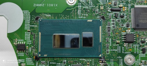 Procesor Intel Pentium 3558U z grafiką Nvidia GT218, która nie jest wykrywana przez system. Brak pamięci RAM (kość RAM zamontowana tylko na potrzeby sprawdzenia płyty).