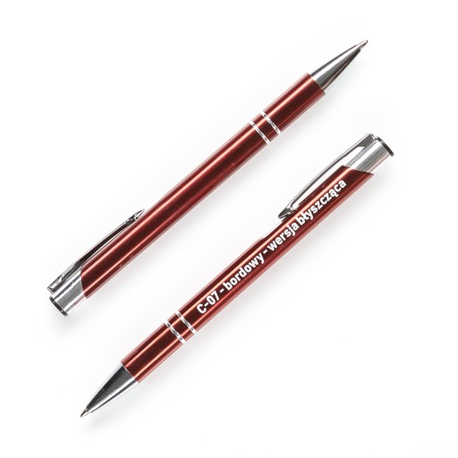 Oferta dotyczy 500 szt metalowych długopisów z serii COSMO z grawerem z jednej strony długopisu (na wszystkich długopisach wygrawerowany jest ten sam projekt).