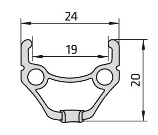 Dodatkowe frezowanie zwiększa skuteczność hamowania. Koło wyposażone w 32 stalowe szprychy, wzmacniane nyple oraz wskaźnik zużycia obręczy. Kapslowane otwory na szprychy. Otwór na wentyl samochodowy (AV).