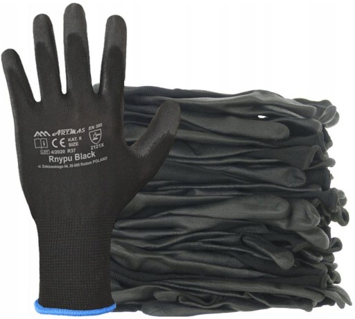 ✔️ Mocne, WYTRZYMAŁE rękawiczki ROBOCZE ochronne RNYPU BLACK wykonane z POLIESTRU, powlekane POLIURETANEM, kolor CZARNY ✔️