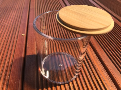 Pojemnik do przechowywania patyczków kosmetycznych wykonany z akrylu, pokrywka bambusowa.