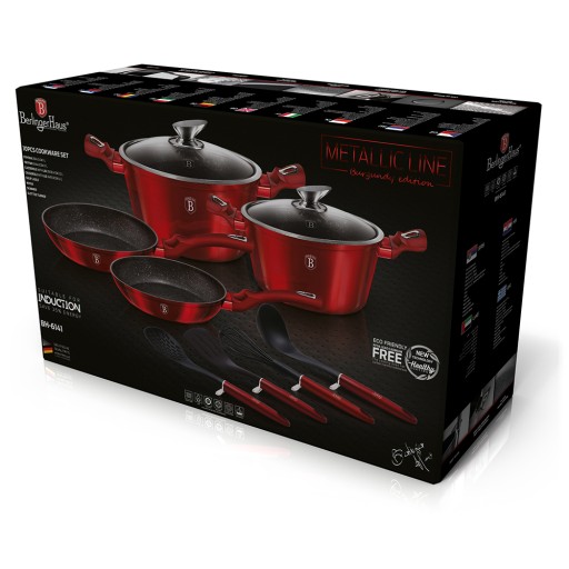 10-częściowy zestaw garnków BERLINGER HAUS z serii METALLIC LINE - BURGUNDY
