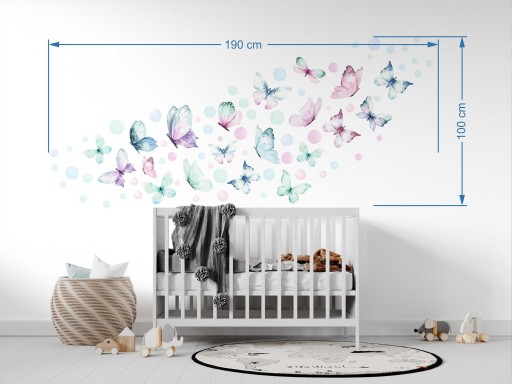 Naklejki rozmieszczone na ścianie tak jak na wizualizacji zajmują powierzchnię 190x100 cm.