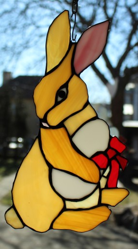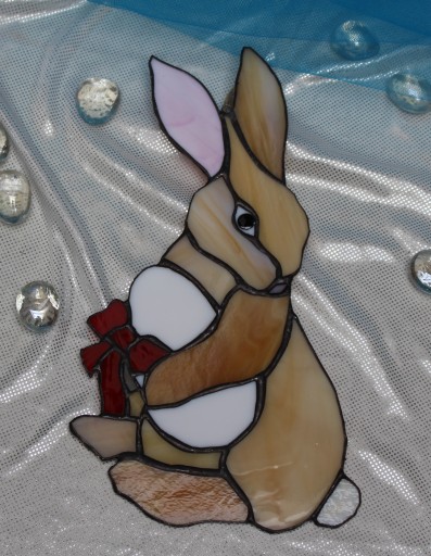 Jedynym namalowanym elementem jest czarna źrenica zajączka.