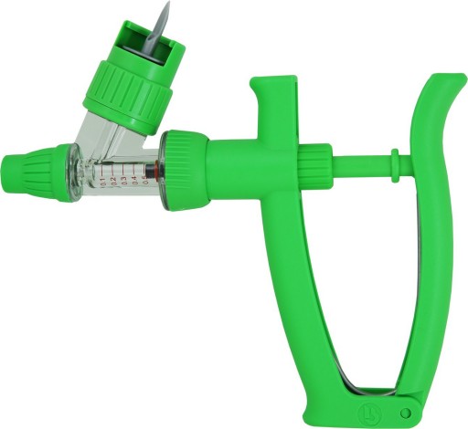- Wygodne pokrętło umożliwiające ustawienie dawki – z możliwością regulacji w zakresie od 0,1 ml do 0,5 ml (co 0,1 ml).