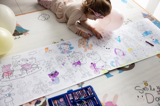 Nasze kolorowanki są drukowane prostymi pogrubionymi liniami w kolorze szarym, wszystko po to aby kolorowanie było łatwe i przyjemne nawet dla najmniejszych rąk. Postacie są w różnych wymiarach dla młodszych i starszych dzieci. Kolorowanie od najmłodszych lat to wspaniały sposób na wzmocnienie dłoni, pracę nad chwytem i nadgarstkiem. Proste i przyjemne arkusze do kolorowania wspomagają i poprawiają u dzieci naukę skupienia. Ponadto w trakcie kolorowania dzieci uczą się perspektywy, poznają kształty i kolory. Z czasem te zaangażowanie dzięki wyobraźni przeradza się w kreatywność. Wymiary są specjalnie dostosowane dla dzieci, kolorowanka jest długa co pozwala kolorować jednocześnie większej grupie dzieci, wysokość jest dobrana dla komfortu. Dziecko może w łatwy sposób dosięgnąć do samej góry kolorowanki i nie niszczy jej. Można też przymocować do ściany na wysokości dziecka, dzięki temu zapewnimy komfort przy zabawie. Kolorowanka wykonana jest z grubego papieru, dzięki temu jest wytrzymała. Można rysować po niej kredkami, flamastrami oraz malować farbami. Kolorowanka XXXL to gwarantowane długie godziny niezwykłej zabawy.