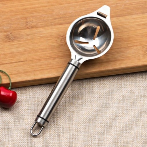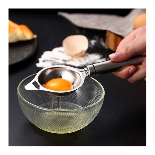 Separator do jajek wykonany ze stali nierdzewnej. Wyjątkowo pomocny gadżet pozwalający dokładnie oddzielić żółtko od białka jajka - niezastąpiony w każdej kuchni. Separator jest lekki i poręczny, nie zajmuje dużo miejsca.