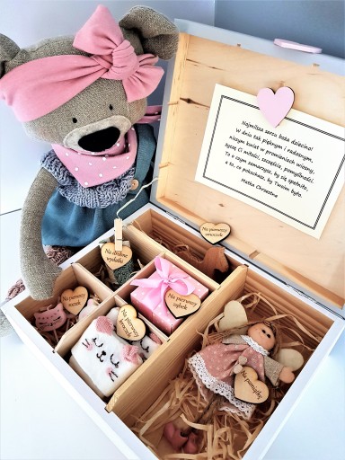 Doskonale nadaje się jako prezent na CHRZEST, ROCZEK, ŚWIĘTA, URODZINY, BABY SHOWER, jak również dla PRZYSZŁEJ MAMY lub na inną okazję.