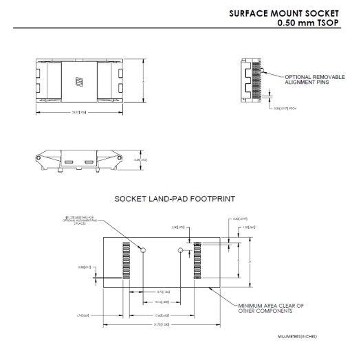 Podstawka z serii "identical footprints" - można bezpośrednio wlutować ją na pady płytki drukowanej przygotowane pod układ w obudowie TSOP48 (np. pamięci Fash seri 28/29/39/49F(C/LV/BV)100/200/400/800/160/320/640) co umożliwia łatwą (bez potrzeby wylutowywania i wlutowywania układu) wymianę układów np. w prototypach, adapterach programatorów i urządzeniach testowych.