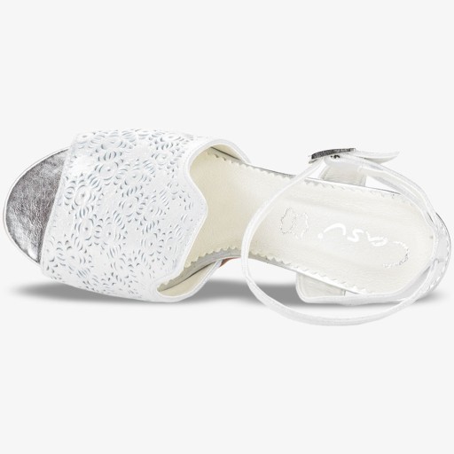Srebrne sandały zostały wyprodukowane w Polsce z najlepszych gatunków skór. Ręczne wykonanie butów gwarantuje doskonałą jakość, wygodę i dopasowanie do stopy. Wnętrze obuwia zostało wytworzone z wysokiej jakości skóry, która zapewnia maksymalny komfort użytkowania.