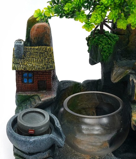 【Krajobraz】 Symulowane modelowanie krajobrazu, są drzewa, ogrody skalne, dom, młyn kamienny, koło feng shui. Woda stale napływa do akwarium, ryby nie są pozbawione tlenu. W zestawie atomizer, zapewni wspaniały efekt atomizacji.