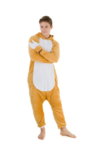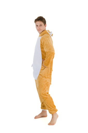 Biało-brązowy wzór uroczego leniwca na kombinezonie dodaje mu uroku i sprawia, że z pewnością wyróżnisz się z tłumu. Kombinezon został wykonany z miękkiego i przyjemnego w dotyku materiału, który doskonale izoluje przed zimnem. Kaptur, kieszenie i mały ogonek to dodatkowe elementy, które sprawiają, że nasz Onesie jest jeszcze bardziej funkcjonalny.