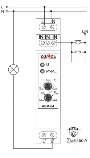 Automat schodowy 1-mod.16A ASM-04 z ogranicznikiem
