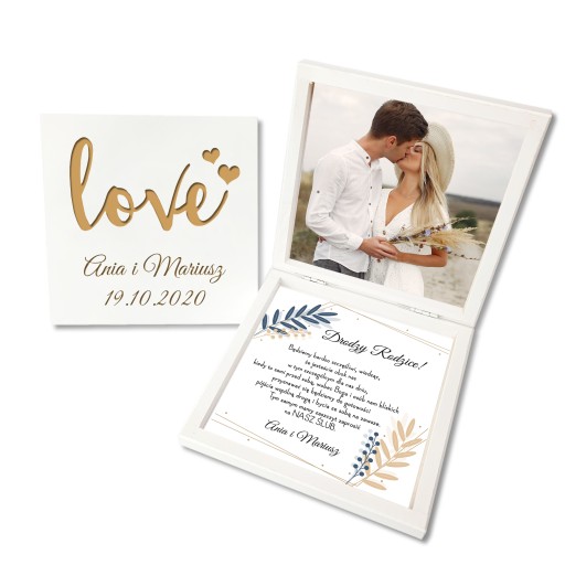 Pudełko drewniane zaproszenie prośba dla rodziców ślub wesele błogosławieństwo zdjęcie