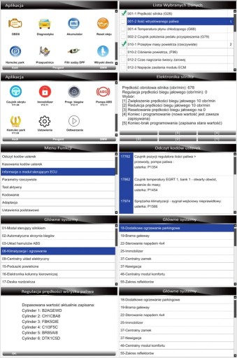 - test elementów wykonawczych (uruchomienie zaworu EGR, silnika wentylatora, wskazówek licznika, zamków centralnych, itp..)