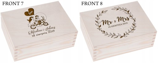 - dane do personalizacji (np. front 1 - Mariola i Robert, 15 sierpnia 2019)