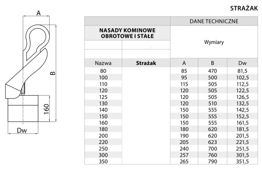 Strażak kominowy wykonany z blachy kwasoodpornej przeznaczony jest do wspomagania wentylacji grawitacyjnej wywiewnej oraz ciągu w kominach spalinowych, dymowych i wentylacyjnych.