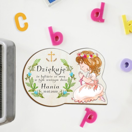 DREWNIANY MAGNES jest spersonalizowany, możemy umieścić na nim imię dziecka oraz datę I Komunii Świętej, dzięki czemu ci, których kochasz, spoglądając na niego, zawsze będą o Was myśleć!