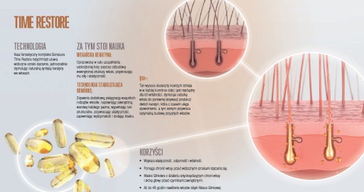 - Technologia stabilizująca komórkę: naprawia uszkodzenia i wypełnia luki strukturalne, przywracając pasmom elastyczność, blask i siłę.