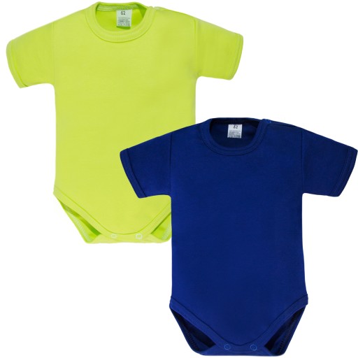 Praktyczny zestaw dwóch sztuk body z krótkim rękawem w kolorze granatowym oraz pięknym żywym odcieniu limonki - wykonane z certyfikowanej bawełny 100%.
