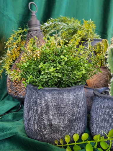 Osłonka ceramiczna w antracytowym kolorze o ciekawej strukturze. Idealnie wkomponuje się we wnętrze w stylu rustykalnym, boho jak i nowoczesne. Osłonka ozdobi biuro, salon czy sypialnię.
