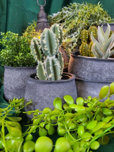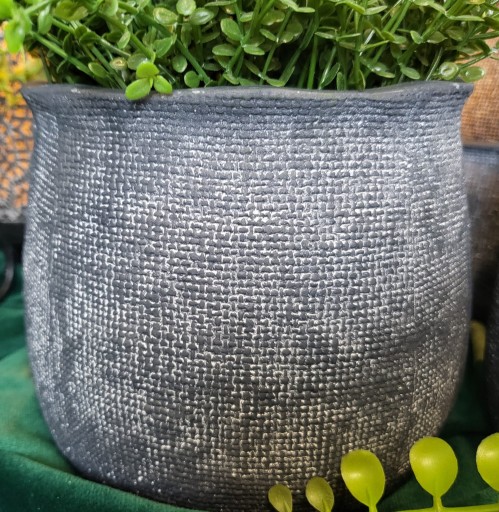 Osłonka ceramiczna w antracytowym kolorze o ciekawej strukturze. Idealnie wkomponuje się we wnętrze w stylu rustykalnym, boho jak i nowoczesne. Osłonka ozdobi biuro, salon czy sypialnię.
