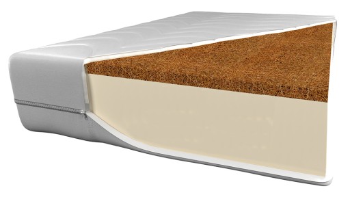 - Warstwa kokosu działa antygrzybicznie i powoduje usztywnienie materaca. Mata jest w 100% surowcem naturalnym wykonanym z włókien kokosowych absorbującym wilgoć(pot). Posiada również właściwości antybakteryjne. Zastosowany kokos poprawia cyrkulację powietrza i nie jest podatny na odkształcenia wynikające z użytkowania.
